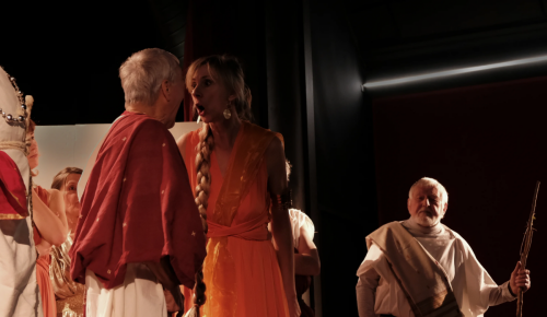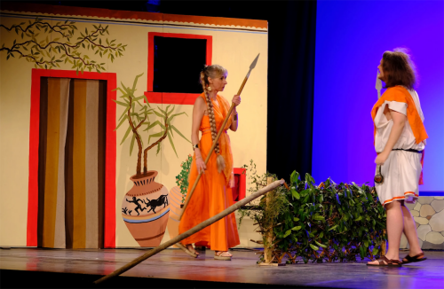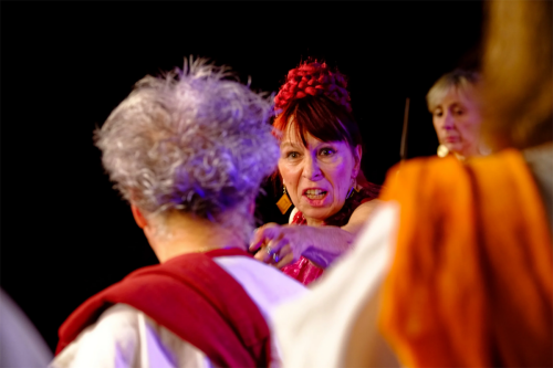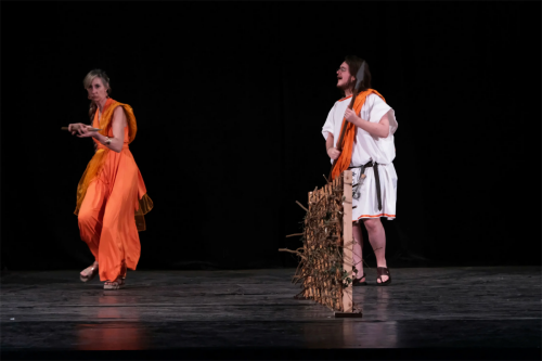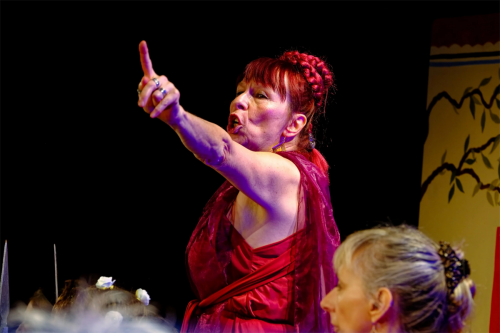 Elle nous offre même, dans le deuxième acte, une joyeuse parodie du chœur antique (les chœurs reprenant ce que le personnage principal défend).