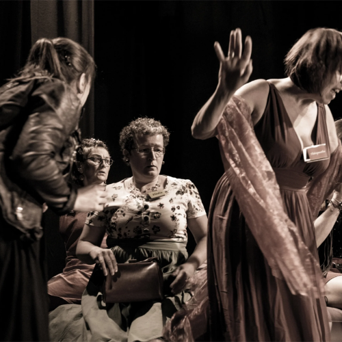 Etape 1 Installez les 5 comédiennes, avec le texte, autour d’une table.